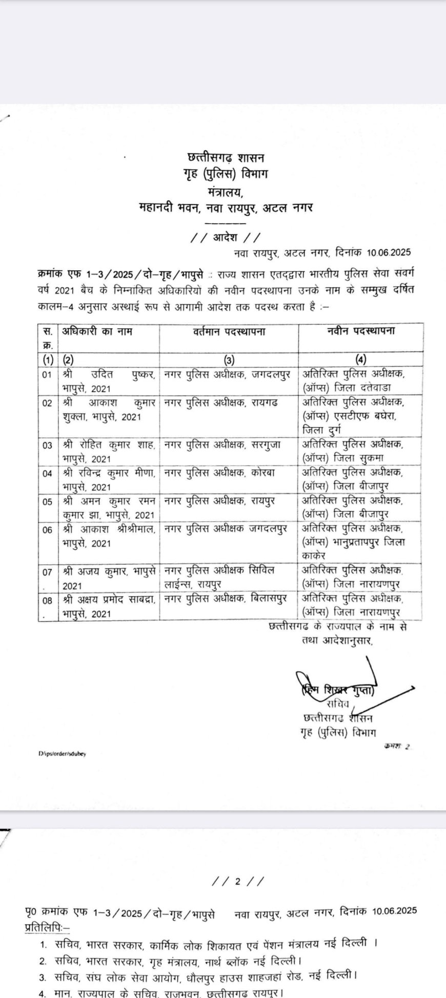 CG Breking news: राज्य में IPS अधिकारियों की तैनाती: 8 अफसरों को मिली नई जिम्मेदारी