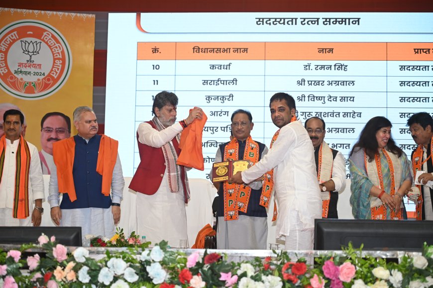 इसी कड़ी में, भाजपा युवा नेता बसंत अग्रवाल ने अपने अथक प्रयासों और जमीनी सक्रियता से लगभग 13000 लोगों को भाजपा की सदस्यता दिलाई। उनके इस उत्कृष्ट प्रदर्शन को देखते हुए पार्टी ने उन्हें "सदस्यता रत्न" जैसे बड़े सम्मान के लिए चुना। मुख्यमंत्री विष्णुदेव साय के हाथों सम्मान प्राप्त करना उनके लिए एक गौरवपूर्ण क्षण था।