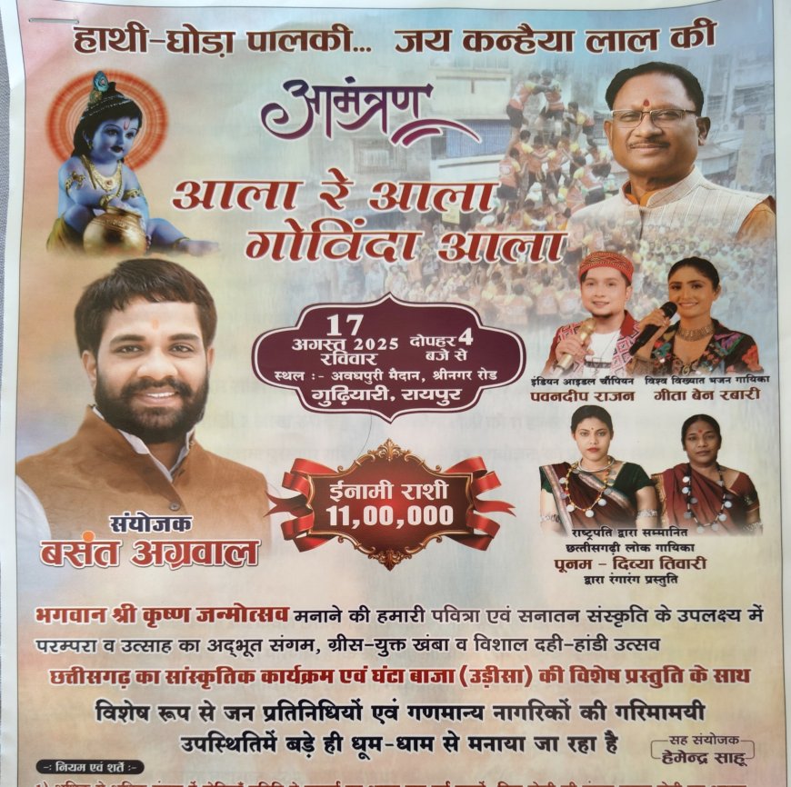 गुढ़ियारी में दही-हांडी उत्सव समिति द्वारा भव्य कार्यक्रम आयोजित, संयोजक श्री बसंत अग्रवाल जी की अगुवाई में होने जा रहा है विशाल आयोजन।